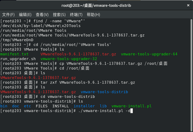 进入解压缩的目录后可以看到安装文件vmware-install.pl,使用命令安装